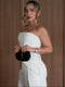 Es un blusa sin tiras con una escote asimétrico más largo en el lado izquierdo y corto al lado derecho, elaborada en una tela suavemente estructurada con movimiento.