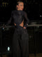 Es un body de cuello alto y mangas largas que equilibran la sensualidad de una espalda abierta, revelando lo justo.