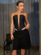 Corset de líneas precisas y escote profundo. La doble licra italiana, fruncida con precisión envuelve el torso como una segunda piel, mientras las varillas esculpen con precisión la silueta.